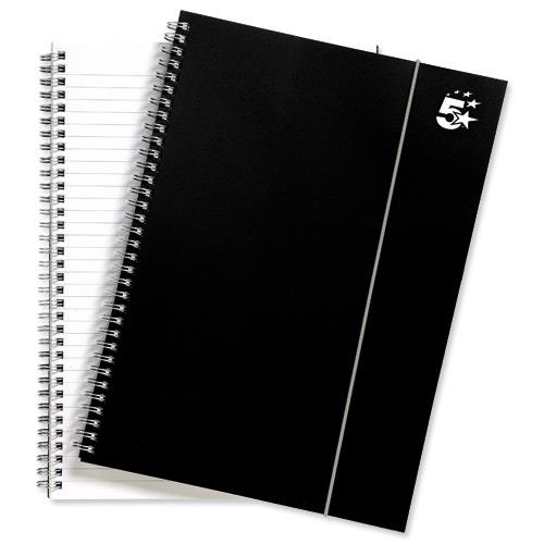 5 Star Office Notebook Wirebound Polypropylene Elasticated 80gsm A4 Black [Pack 6]