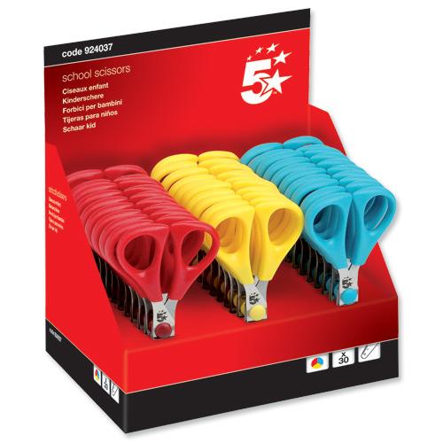 5 Star Office School Scissors with Plastic Handles and Stainless Steel Blades 130mm Assorted [Pack 30]