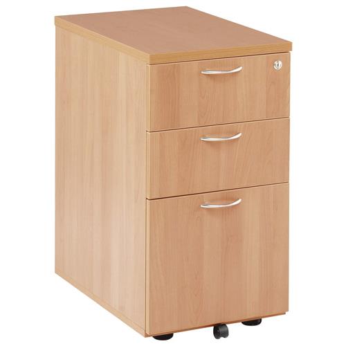 Offering a convenient and flexible place to store documents, papers and stationery, this white desk high pedestal can fit conveniently next to your desk to provide additional work space. The pedestal features 2 box drawers and 1 filing drawer suitable for foolscap suspension filing. This pedestal measures W400xD600xH730mm and can be placed beside the 600mm end of a radial desk.