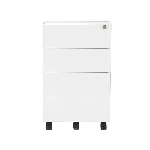 This entry level Jemini Mobile Steel Pedestal features 1 stationery drawer and 1 filing drawer suitable for use with A4 suspension files. The tough steel carcass features an anti-tilt mechanism, allowing only 1 drawer open at a time. This pedestal measures W390xD470xH615mm and comes in a white finish with an integrated handle design.
