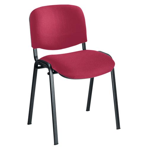 This multi purpose stacking chair from Jemini is a comfortable, durable choice for offices, meeting rooms, reception areas and more. It features a soft claret upholstered seat and back with a sturdy black metal frame for durability. The chairs can be stacked when not in use to save space - ideal for occasional conferences and meetings. Optional arms and a folding writing tablet are available separately for even more versatility.
